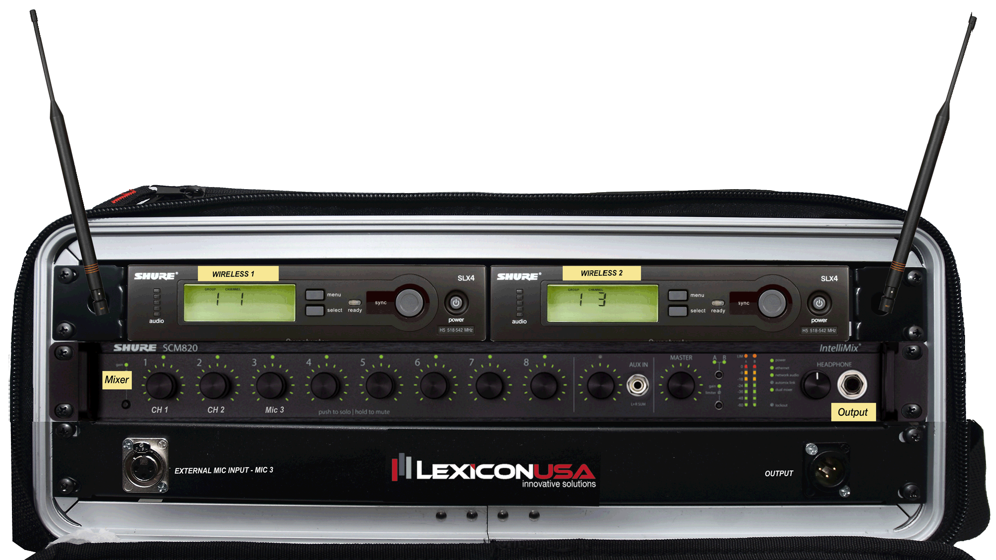 One DLT300 transceiver is set up as body-worn transmitter to provide a direct audio feed from speaker to interpreters. Interpreters use DLT’s to transmit their simultaneous interpretation to audience members on separate channels for each required language. The interpreters can work together by “spelling” each other (giving each other a break), interpreting after 15-20 minutes.