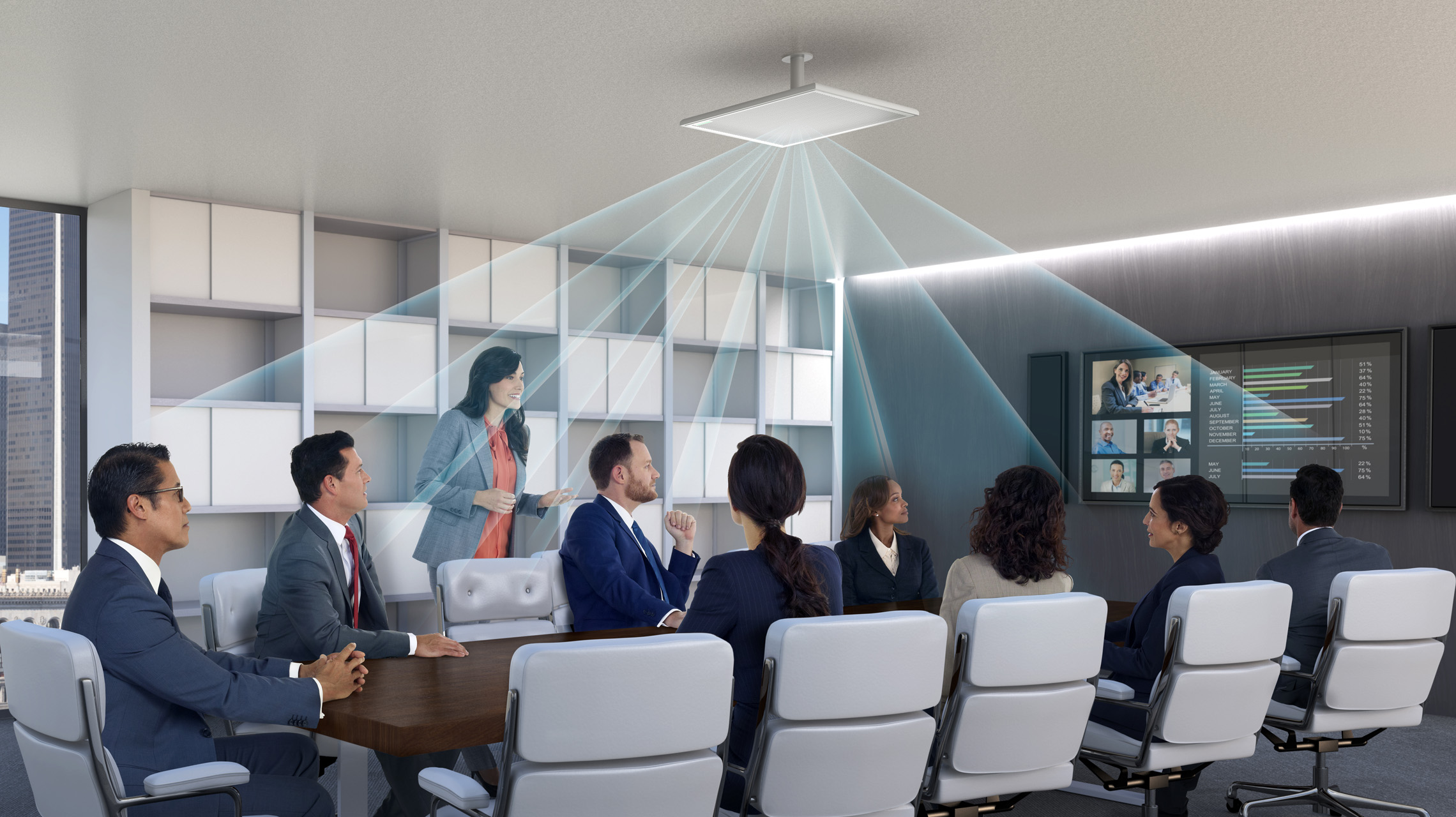 Harmonious integration leads to more open discussion. An elegant approach to conferencing audio, MXA910 with IntelliMix eliminates all equipment clutter, leaving more room for clarity. Instead of focusing on a microphone’s position, you can concentrate on compelling communication.